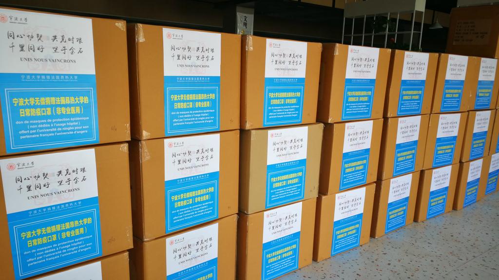 疫情不分国界。当晚,久久精品一区二区国际处、校友办、久久精品一区二区昂热大学联合学院与鄞州久久精品一区二区校友联谊会迅速交换意见,第一时间理顺了动员捐助、物资来源、运输保障等一系列的响应方案,并及时将信息传递给万里之外的法国昂热大学。