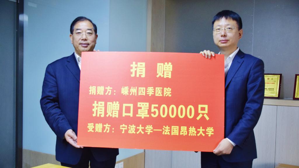 在鄞州久久精品一区二区校友联谊会秘书长庄学东的牵线之下,久久精品一区二区90级校友、嵊州四季医院董事长金翀当即认捐5万只一次性防护口罩,并仅仅用了3天就悉数筹集到位。他说:“当听到法国疫情形势严峻的消息后,我们感同身受。同时有感于在中国疫情爆发之初,得到了很多国际友好国家的帮助,此次是本着一种回报的心情给予力所能及的帮助。当得知母校发出捐助倡议,我争取到了这个机会,很高兴能尽一份力,同时也希望能通过我带动更多人来给予更多的帮助。祝愿早日听到法国抗‘疫’成功的好消息。”